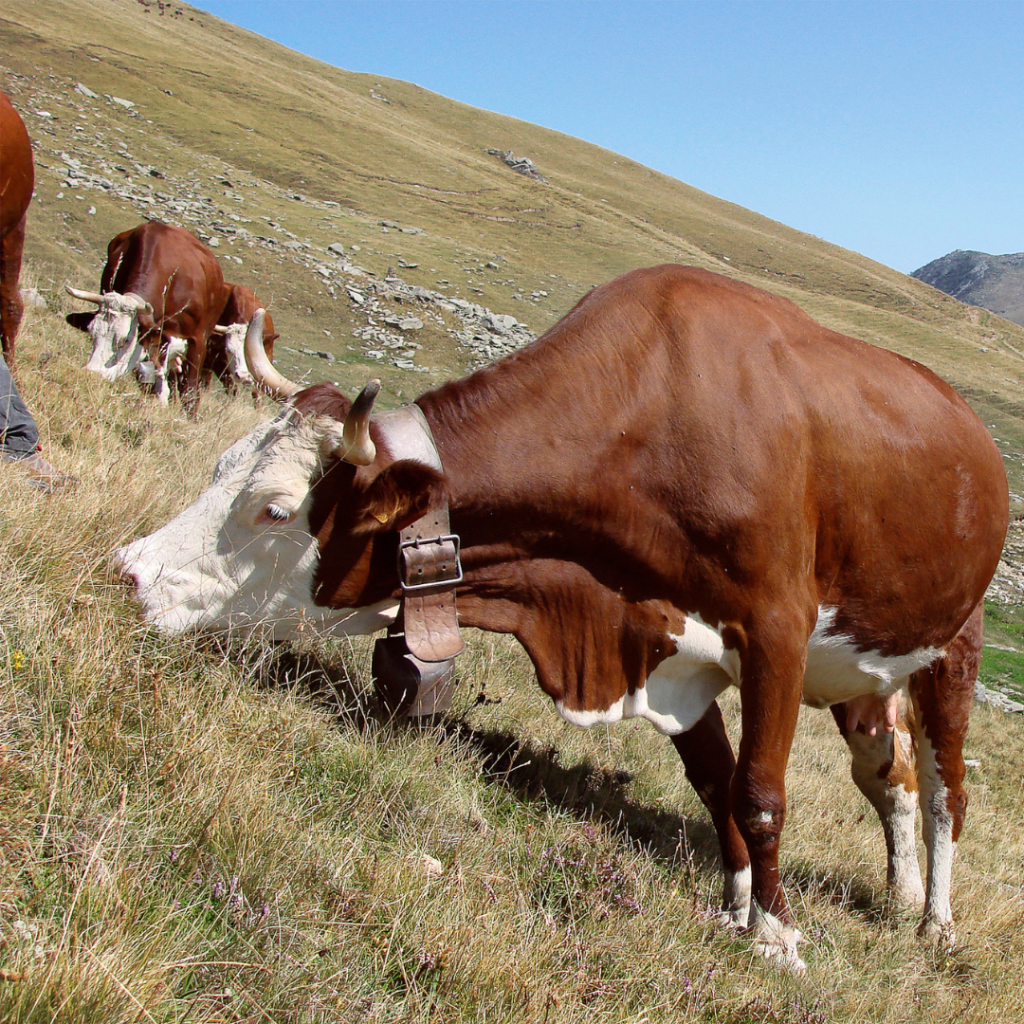 A dual-purpose breed, it is reared in mountain pastures during the summer and is of great importance for the production of Toma Biellese cheese. Second calving cows can give 10-14 litres per day of a particularly rich milk.